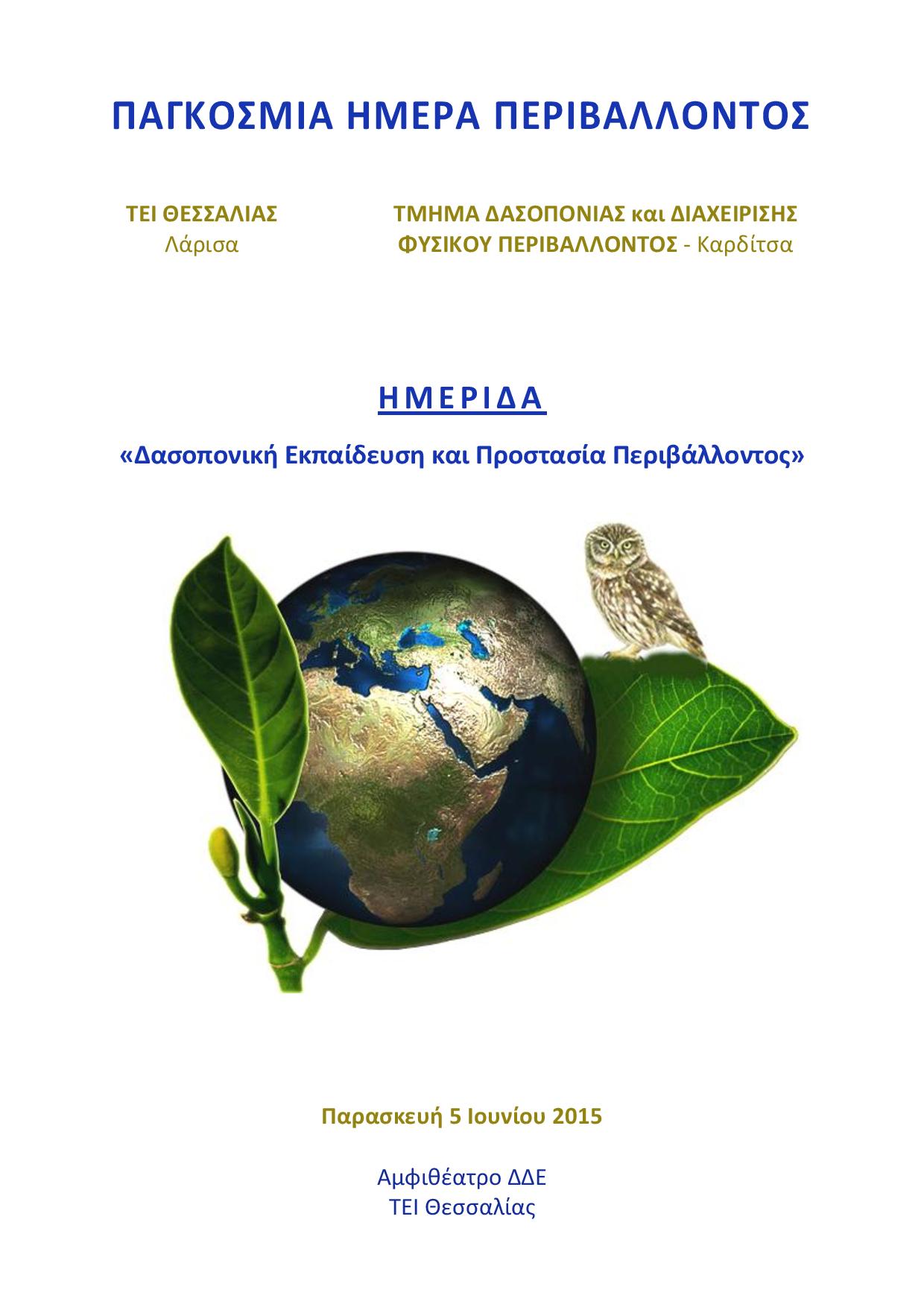 Το Τεχνολογικό Εκπαιδευτικό Ιδρυμα (ΤΕΙ) Θεσσαλίας και το Τμήμα Δασοπονίας και Διαχείρισης Φυσικού Περιβάλλοντος (Καρδίτσα), για τον εορτασμό της Παγκόσμιας Ημέρας Περιβάλλοντος, διοργανώνει Ημερίδα-Εκδήλωση με θέμα