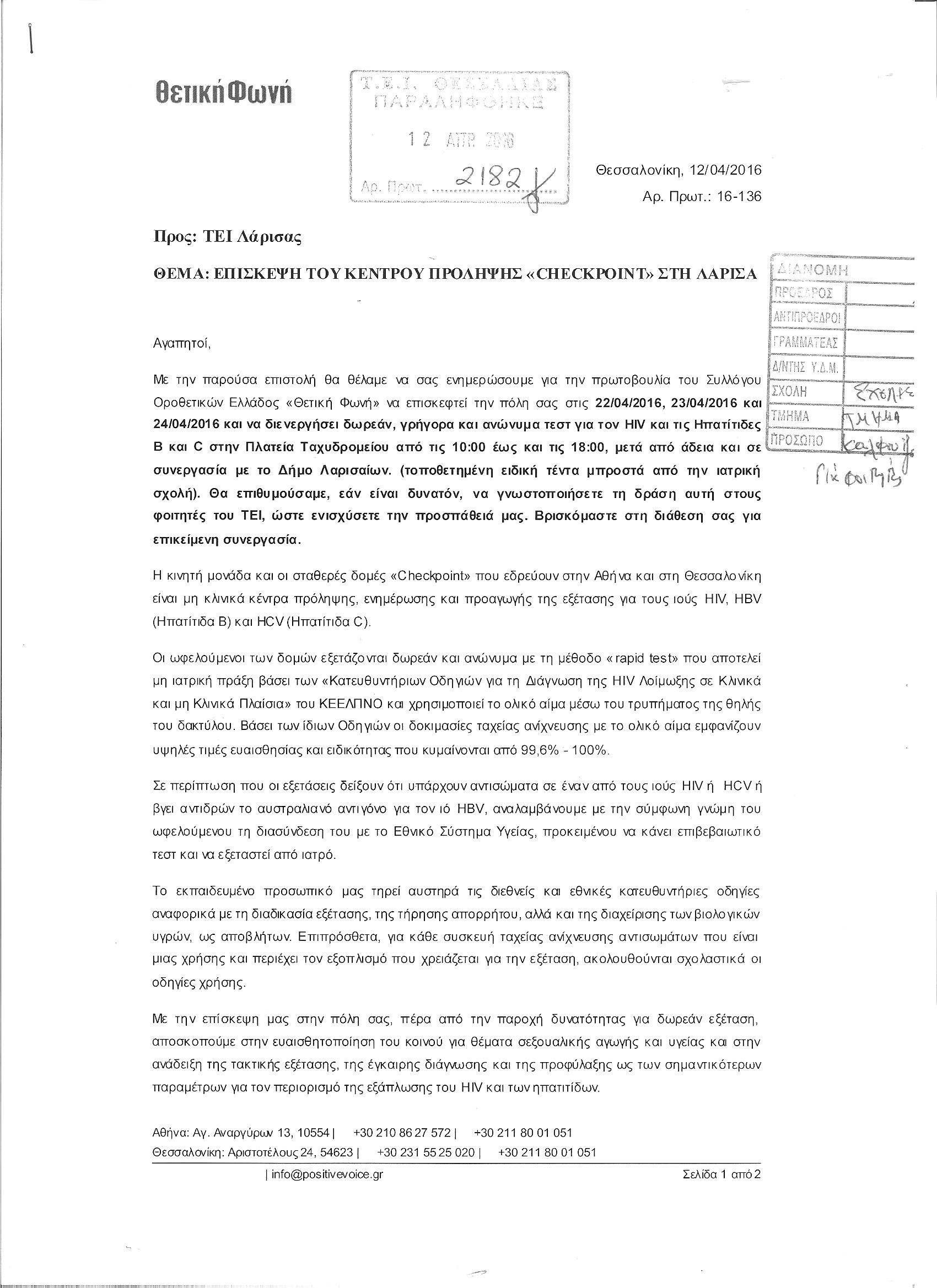ΕΠΙΣΚΕΨΗ ΤΟΥ ΚΕΝΤΡΟΥ ΠΡΟΛΗΨΗΣ CHECKPOINT ΣΤΗ ΛΑΡΙΣΑ
